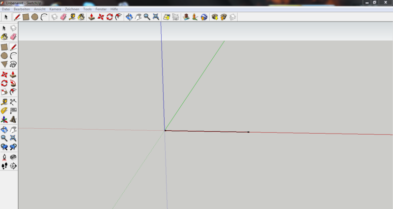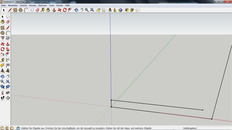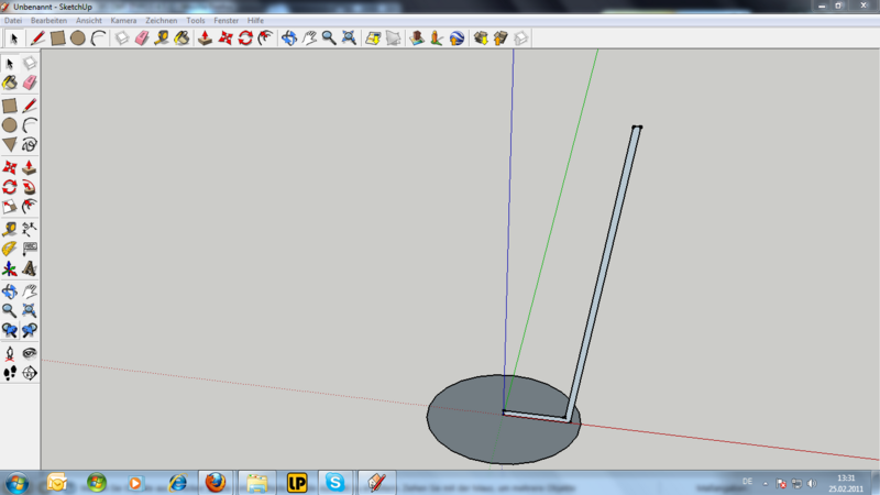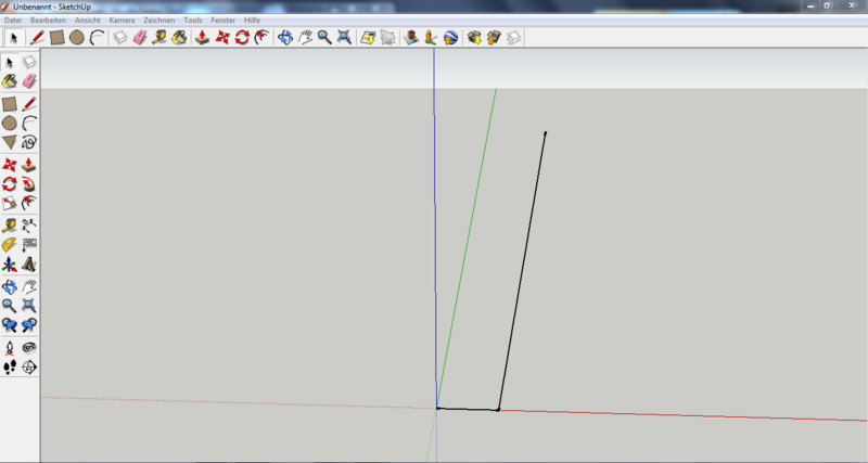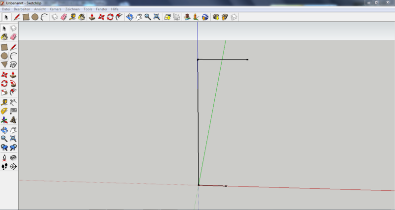 Es wird nun eine 2mm lange Linie auf der blauen Achse angezeichnet und dann eine 23mm lange Linie Parallel zur 25mm langen Linie gezeichnet