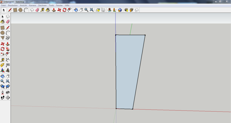 Nun werden mit einer langen Linie die beiden parallelen Linien an der "freiligenden Seite" miteinander verbunden, sodass daraus ein Trapez wird