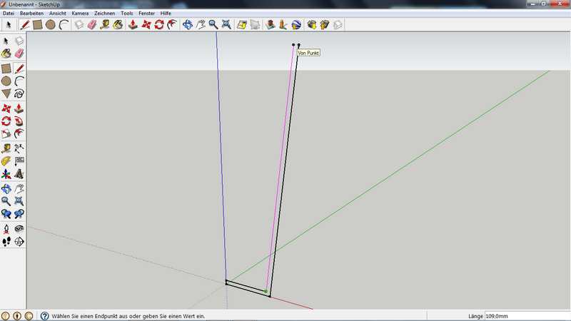 Jetzt wird eine Parallele zur schrägen Linie gezeichnet, bis "Von Punkt" erscheint und die Linie lila wird