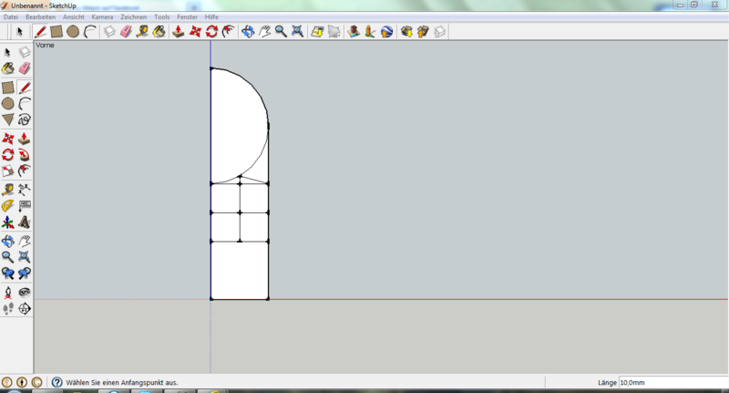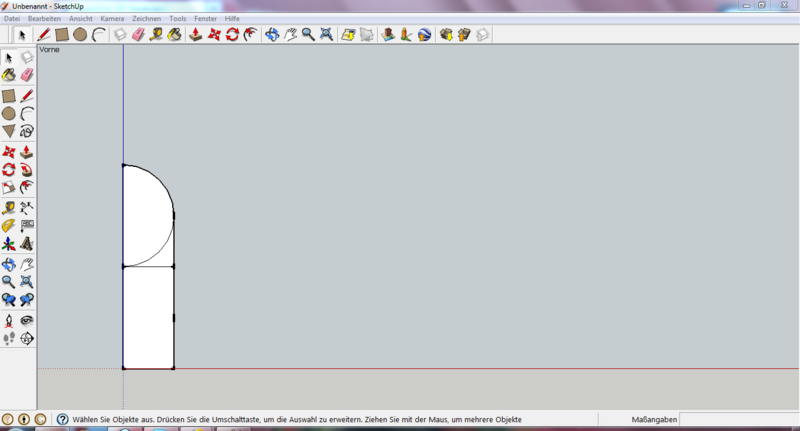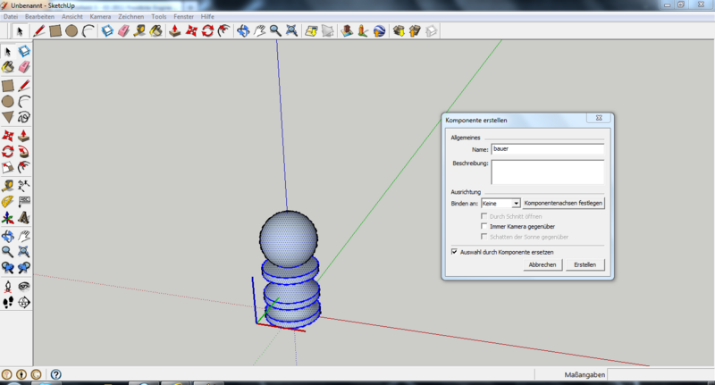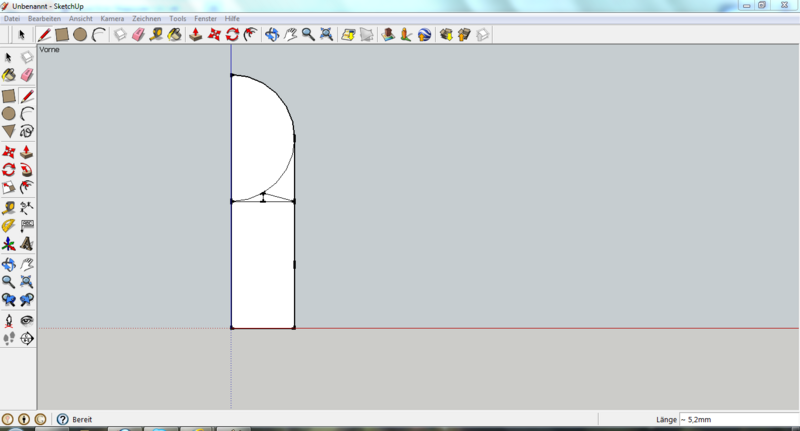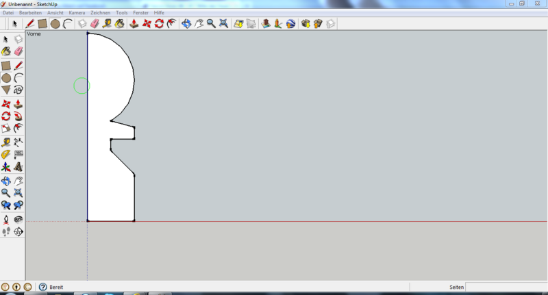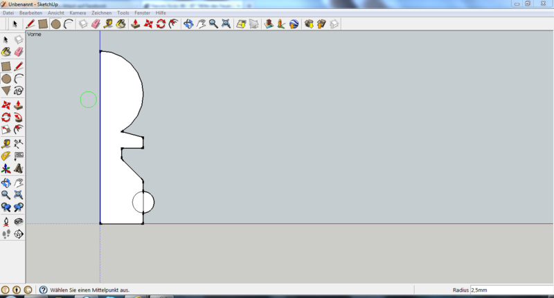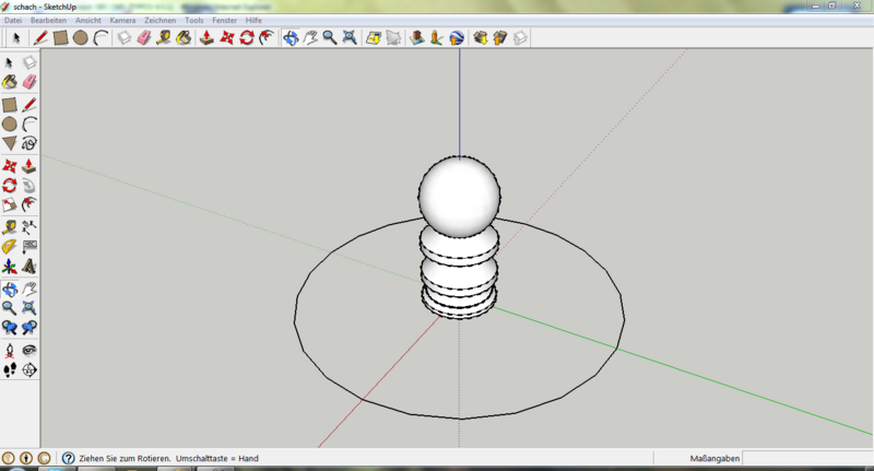 Jetzt zoomen sie weg von Modell un schalten die Perspektive ein. Danach ziehen sie einen Kreis am Koordinatenursprung der etwas größer ist als als die Figur.
