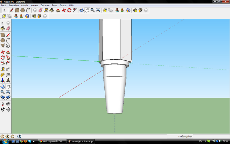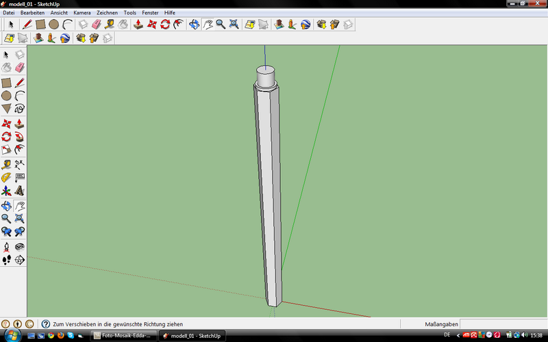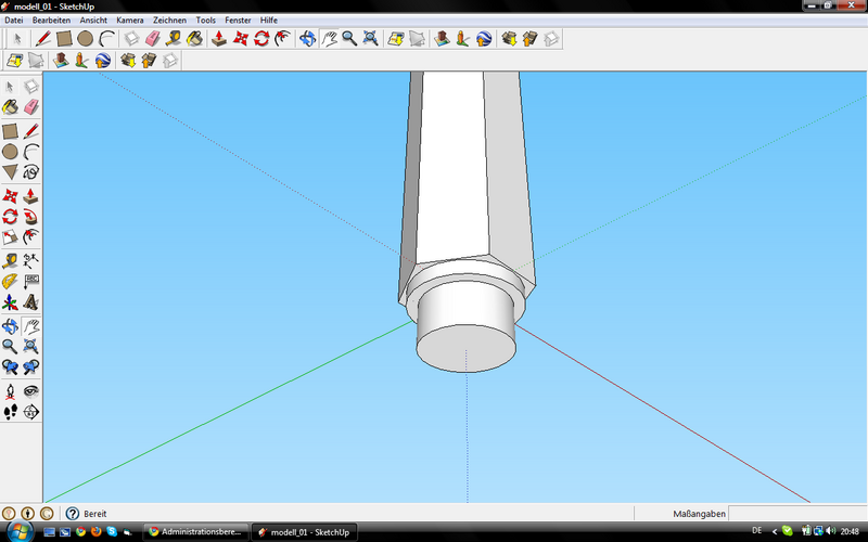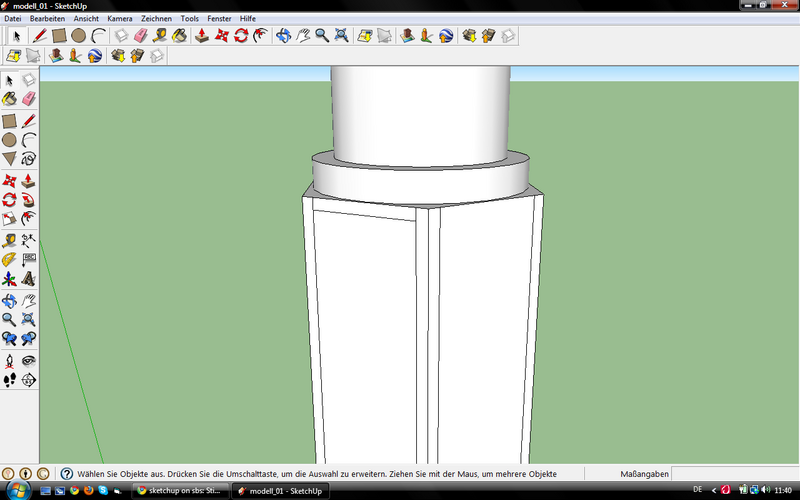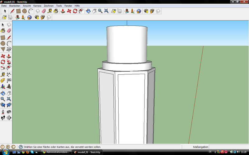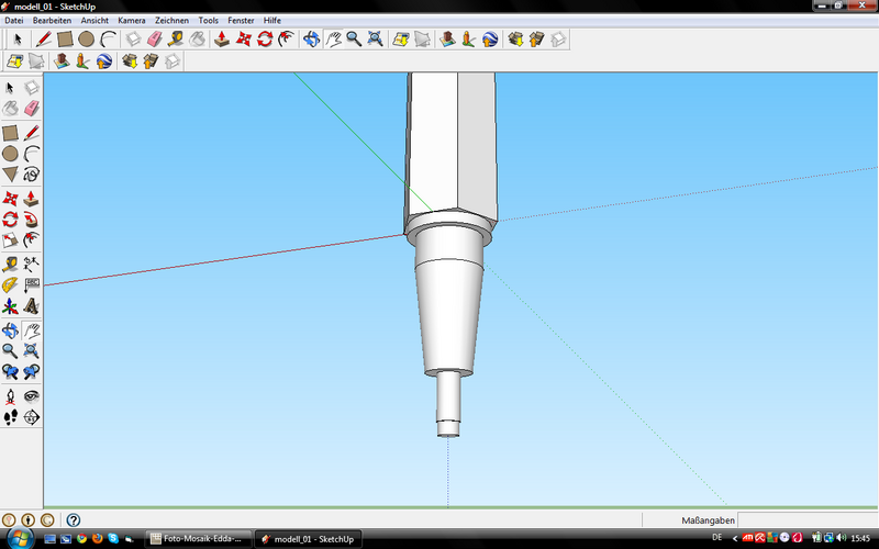 - auf dem entstandenen Zylinder, wieder ein Kreis zeichnen (mit Kreis - Werkzeug) und nochmal mit dem Drücken/Ziehen Werkzeug den Kreis nach oben ziehen