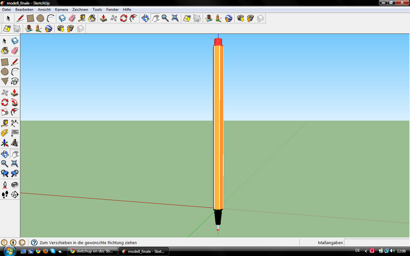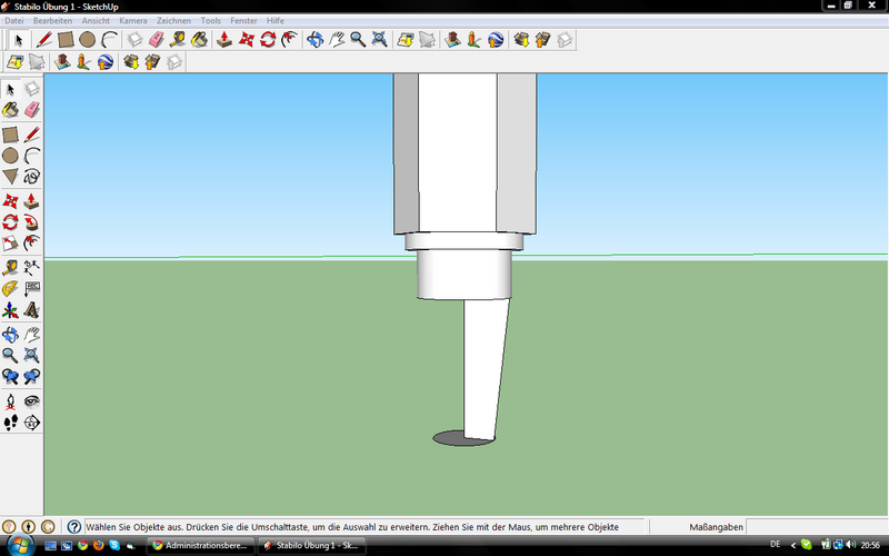 - auf dem entstandenen Zylinder mit dem Stift-Werkzeug eine Linie nach unten zeichnen