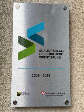 Am 04.12.2025 wurde uns anlässlich der Eröffnung unseres Weihnachtsmarktes in Anwesenheit der Schüler und vieler Eltern von Frau Dathe aus dem Sächsischen Staatsministerium für Kultus und von Frau Dr. Finke (Landesarbeitsstelle Schule-Jugendhilfe Sachsen e.V.) das Qualitätssiegel für Berufliche Orientierung überreicht.