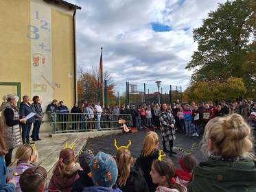 Bei strahlendem Sonnenschein führte Frau Seidel, stellvertretend für das Kollegium am 29.10.2025 durch ein kleines Programm.