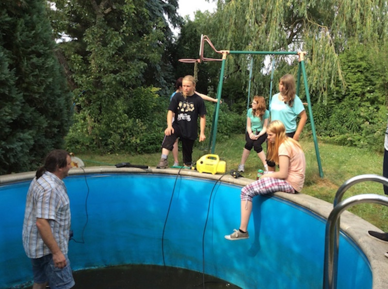 1. Tag (Ankunft in Riesa / Aufbauen der Zelte / gemeinsames Herrichten unserer Bademöglichkeit / gemeinsames Grillen) ... Besonders bemerkenswert ist hierbei, dass es im Vorfeld für diesen Tag eine Unwetterwarnung gab und wir mächtige Angst hatten, dass unsere Zelte davongeweht oder unter Wasser gesetzt werden. Aber weil wir wohl alle so lieb waren, blieben wir bis auf ein paar Regentropfen vor jeglichem Unwetter verschont!
