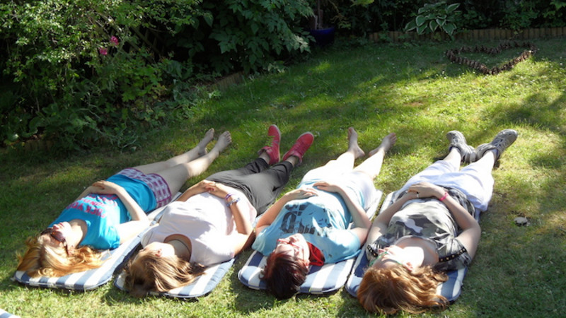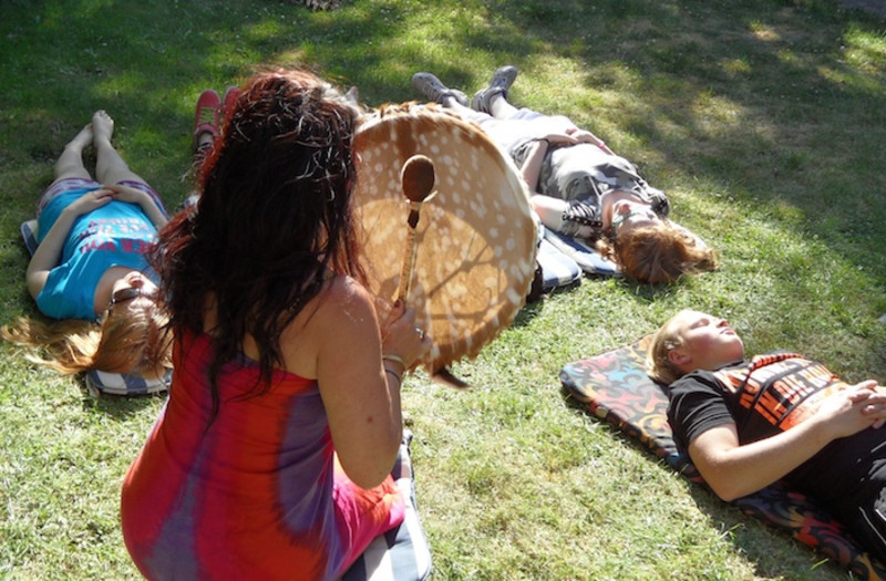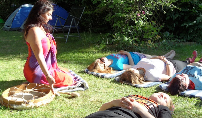 So richtig glauben wollten wir das nicht - bis Petra mit uns über die Bräuche der Naturmenschen sprach, uns hinlegen ließ und zu trommeln begann!