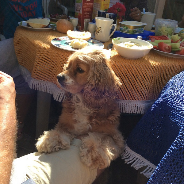 Wir begannen den Donnerstag, nachdem zwei Schüler gemeinsam mit Iffi für uns Brötchen eingekauft hatten, mit unserem gemeinsamen Frühstück, bei dem niemand zu kurz kam - eine junge Dame allerdings durch ständiges Betteln auffiel: Iffi!