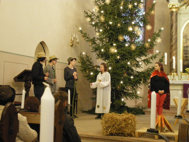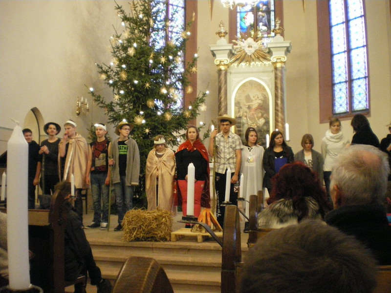 Sie waren mal wieder ganz besonders fleißig unsere Schüler, diesmal aus der Klasse H9, und haben zu Weihnachten gemeinsam mit ihrem Klassenleiter Herrn Hartwig ein Krippenspiel einstudiert. Das wurde dann am 18. Dezember 2015 in der Roßweiner Kirche aufgeführt.
