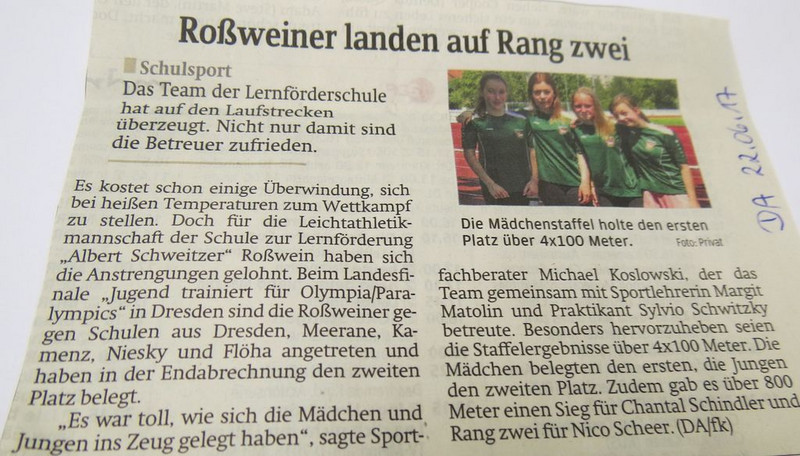 Beim Leichtathletik-Landesfinale "Jugend trainiert für Olympia/Paralympics" in Dresden errang unsere Schule überraschend einen hervorragenden 2. Platz!