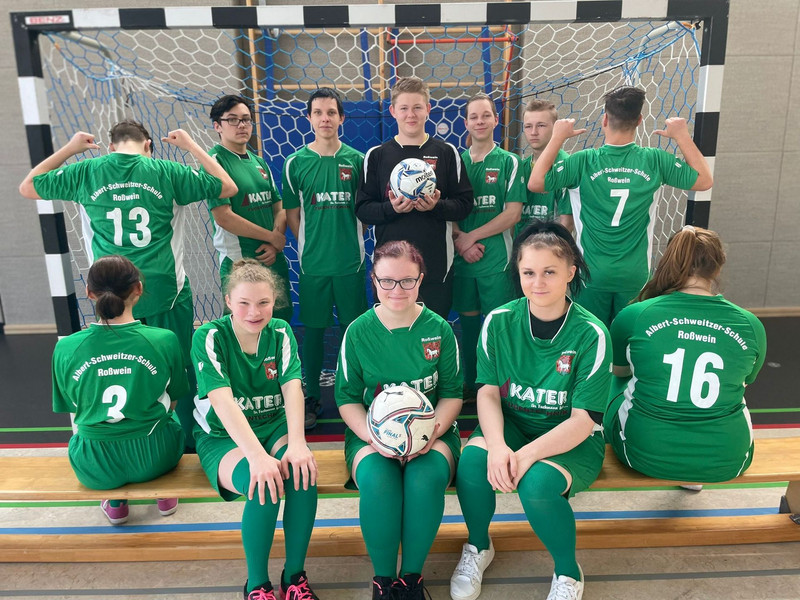 Um das zu ändern, wurde ein Sponsor gesucht und gefunden! Die Firma „Fugentechnik Kater“ aus Roßwein stellte uns 2 komplette Mannschaftssätze Sportkleidung mit dem Schullogo zur Verfügung.