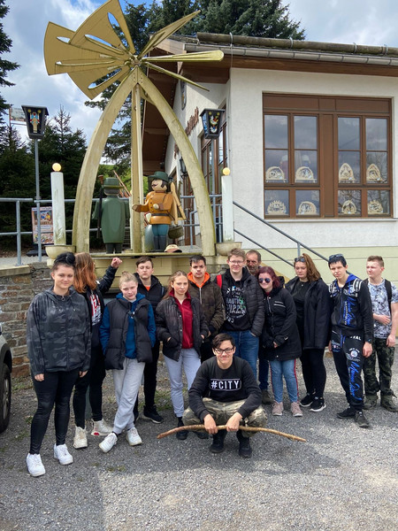 08.00 Uhr war Frühstück. Dann gingen wir 9.30 Uhr auf eine sehr anstrengende, aber auch schöne Wandertour nach Seiffen. Wir liefen zu einer Schauwerkstadt, wo uns gezeigt wurde, wie Holz zu Dekorationen verarbeitet wird.