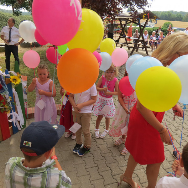Bevor die großen Feiern starten konnten, ließen die Kinder noch Luftballons in den blauen Himmel steigen mit dem Wunsch, dass die anhängende Karte doch bitte zurückgeschickt wird, wenn sie jemand findet. Na, da lassen wir uns mal überraschen!