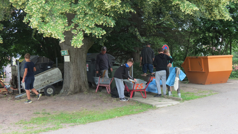 Dieser Tag war am 05.07.2023. Viele kleine und große Helfer räumten Klassenzimmer auf und um, sortierten Spielzeug, reinigten den Barfußweg, räumten das Schulgartenhaus gründlich auf, schafften Ordnung in unserer Küche, reinigten die Computer, brachten den Innenhof auf Vordermann, zogen Unkraut und kleine Bäume aus dem Hang hinter der Schule, reinigten die Vitrinen und polierten die vielen Pokale usw. . . .