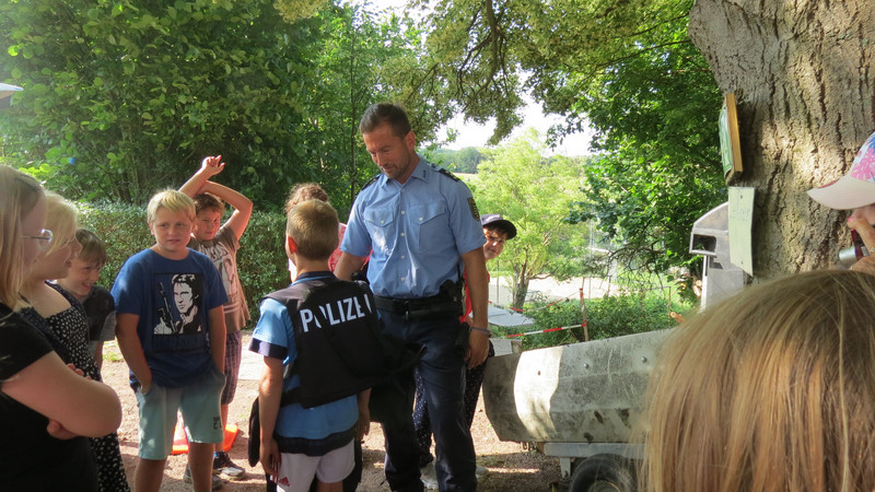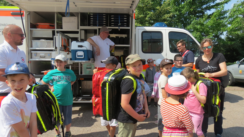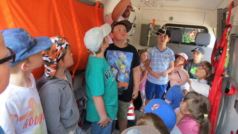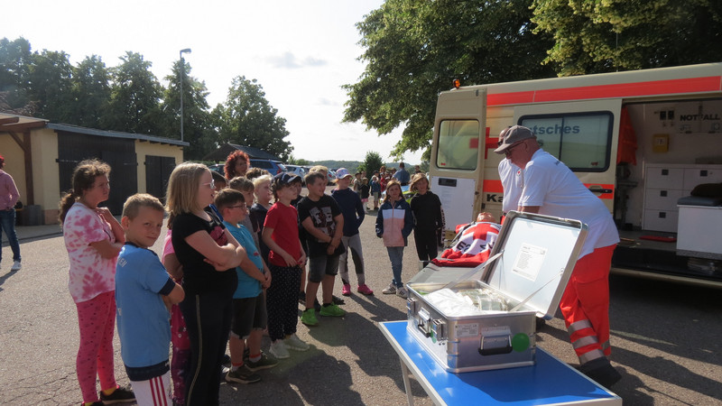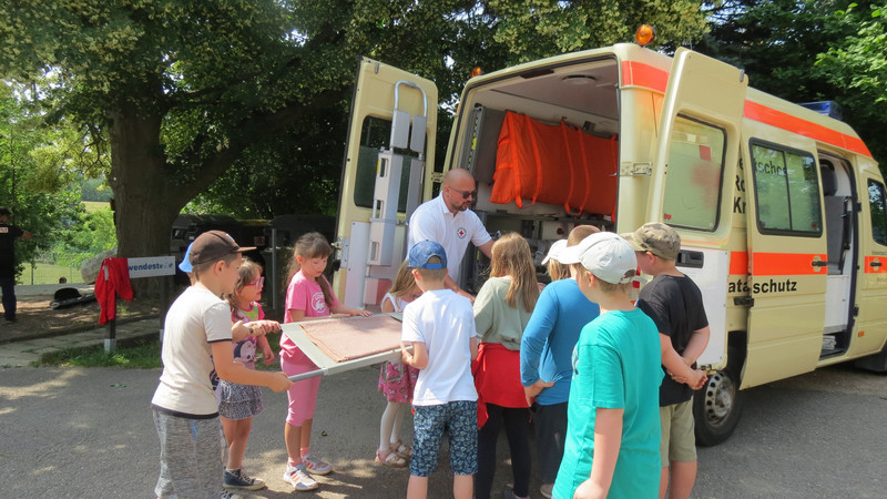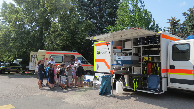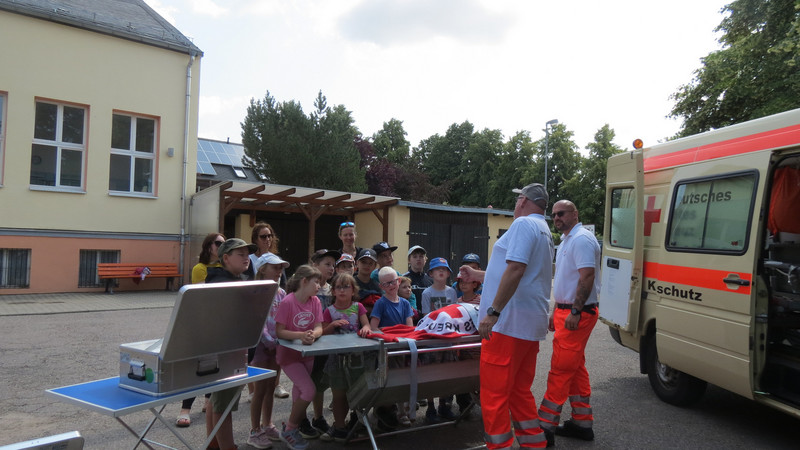 Am Dienstag, den 04.07.2023, besuchten uns die Polizei, das Deutsche Rote Kreuz und die Freiwillige Feuerwehr Roßwein an unserer Schule. Die Klassen 1-4 durften an ihrem Rettungstag die drei Berufsgruppen und deren Fahrzeuge näher kennenlernen. Aufgeteilt auf die 3 Stationen konnten die Schüler die Ausrüstung anschauen und auch ausprobieren, die Fahrzeuge genauer inspizieren, viele Fragen loswerden und ganz gespannt den Erzählungen der Vorbilder lauschen. Für alle Schüler und Lehrer war das ein lehrreicher, schöner und spannender Tag.