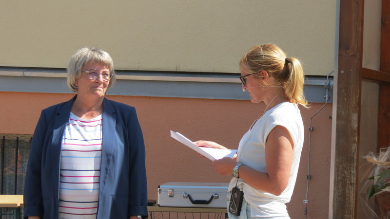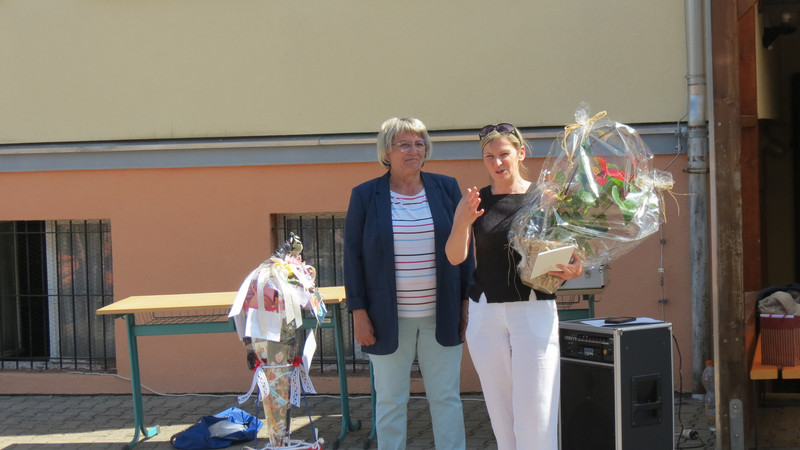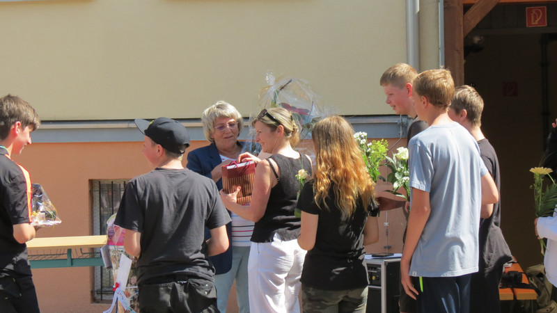 Nach 38 Jahren pädagogischer Arbeit an unserer Schule wurde unsere Kollegin Frau H. Härtling nun in ihren wohlverdienten Ruhestand verabschiedet. Sie hinterlässt in vielen Bereichen ihre Spuren: in Hauswirtschaft, im ehemaligen Schulgarten, bei der Organisation verschiedenster Veranstaltungen in der Schule und für die Stadt Roßwein, bei der Schulhausgestaltung uvm. Somit wird sie uns in guter Erinnerung bleiben. Wir wünschen ihr alles erdenklich Gute für alles, was sie noch vorhat!