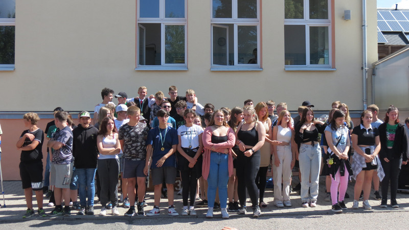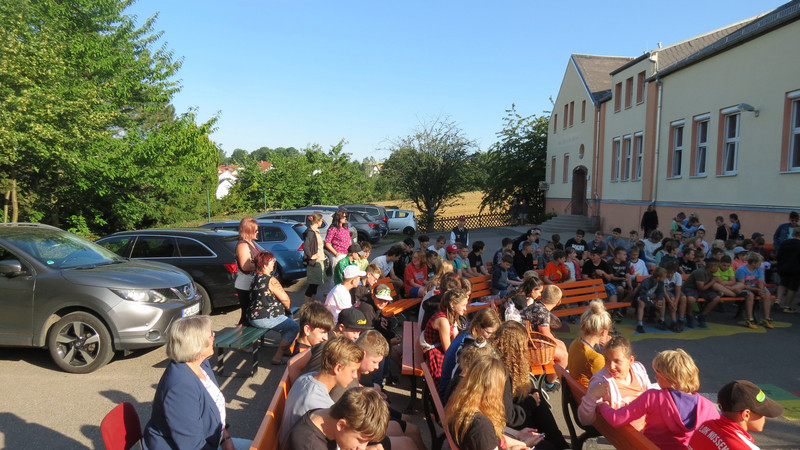 Donnerstag, der 06.07.2023 – herrlichstes Wetter und alle Schüler treffen sich in bewährter Weise auf dem Schulhof!