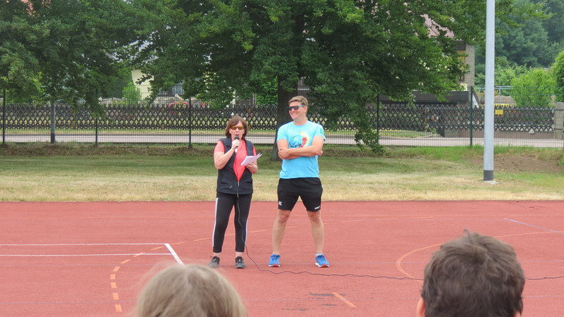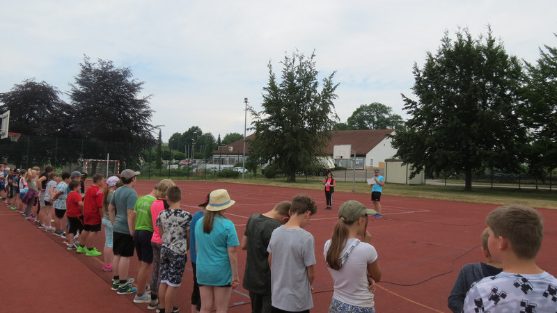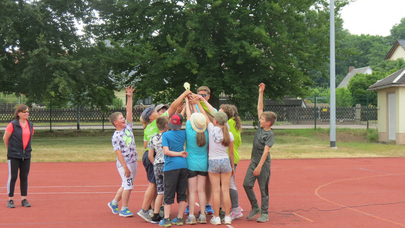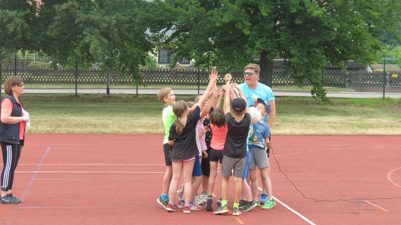 Am Dienstag, den 13.06.2023 war es soweit! Bei schönstem Wetter ging es für die Schüler der Klassen 1 - 4 hochmotiviert ins Stadion. Nach der Begrüßung und der Erwärmung folgte zuerst der Lauf in der Pendelstaffel. Dann folgten noch Weitsprung, Schlagballweitwurf und der 75 m- Lauf. Es herrschte eine ausgelassene Stimmung. Durch kräftige Anfeuerungsrufe wurden die Aktiven immer wieder motiviert! Es war ein gelungener Sporttag!
