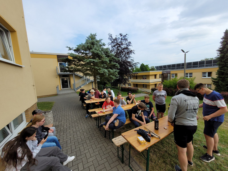 Aber zuvor hatten wir alle gemeinsam eine tolle Abschlussfahrt nach Seifhennersdorf ins Querxenland. So lustig wie die Busfahrt wurde auch unser Aufenthalt. Als erstes mussten die Betten bezogen werden, was schon eine lustige Angelegenheit für einige war. Auf der BMX- Strecke bewiesen viele ihre Geschicklichkeit und Mut. In der "Mind Arena" rauchten die Köpfe, denn es galt, nicht alltägliche Rätsel zu lösen, um den Schlössercod an Kisten zu knacken, die wieder neue Aufgaben enthielten. In der Freizeit gab es viele Möglichkeiten zum Chillen, Tischtennis oder Fußball zu spielen. Tag 2 brachte uns auf Schusters Rappen durch Wald und Feld nach Oderwitz. Es war eine anstrengende, aber auch schöne Wanderung, die alle bewältigt haben. Der Lohn war die Sommerrodelbahn in Oderwitz, wo alle viel Spaß hatten und immer mutiger wurden. Am Abend wurde "Wehrwolf" (ein Kartenspiel) gespielt und gegrillt. Abschließend war der "Discoschuppen" für einige ein tolles Ziel, andere beschäftigten sich lieber mit Ballspielen. Beim abschließenden Frühstück wurde eine Schülerin mit einem Ständchen beglückwünscht - diese Überraschung war gelungen!