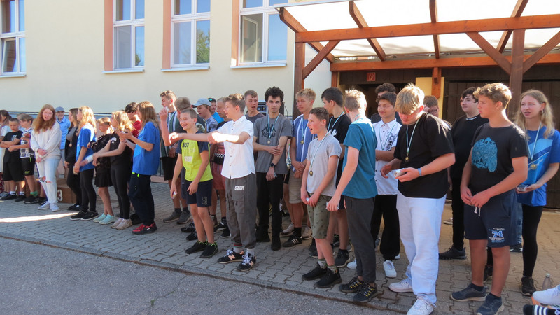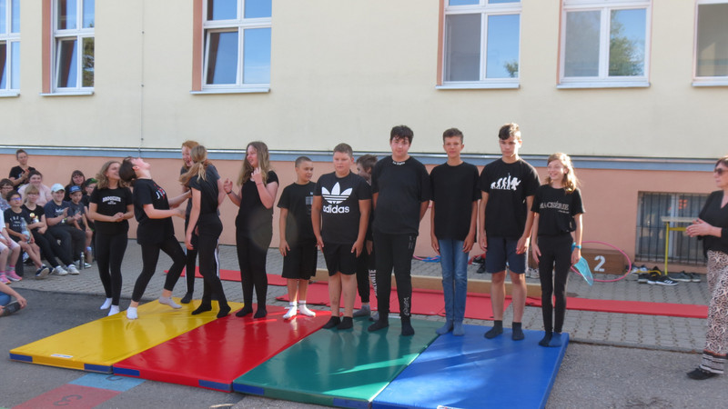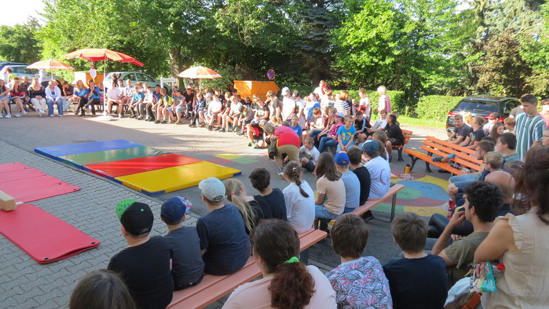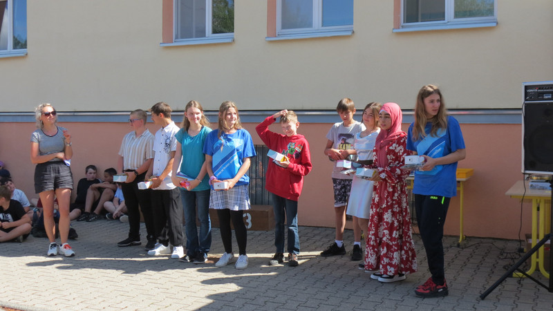 18. 06. 2024 - heute meinte es das Wetter so richtig gut mit uns! Nur gut, denn es war unser Auszeichnungs- und Präsentationstag, zu dem sich traditionell alle Schüler auf dem Schulhof zusammenfanden. Viele Schüler hatten kleine Programmteile vorbereitet und zur Aufführung gebracht. Über das Schuljahr wurde schon von den sportlichen Erfolgen unserer Schüler berichtet. Heute gab es weitere Auszeichnungen für starke Leistungen, u. a. beim Schulsportfest, beim Kochduell oder für je einen Schüler jeder Klasse, der etwas Besonderes geschafft hat.