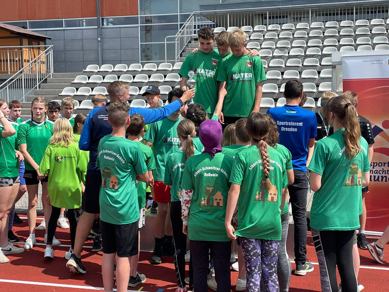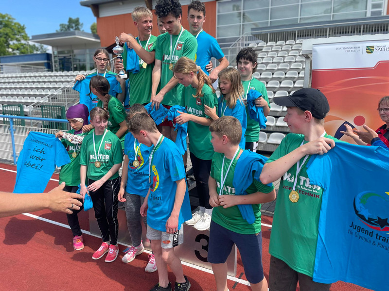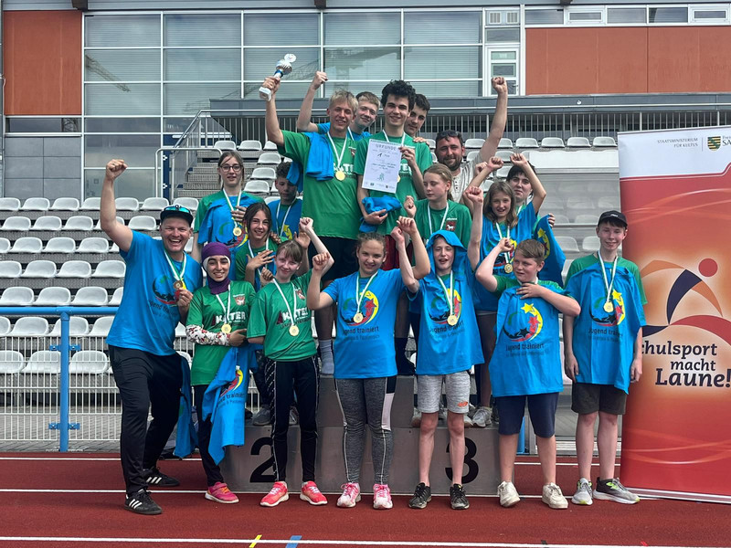 Diesmal schafften die Leichtathleten das Unglaubliche: Zum dritten Mal in Folge gewannen sie in Dresden das Landesfinale!!!