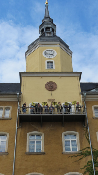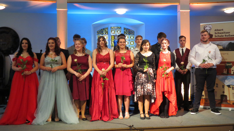 Traditionell findet deshalb eine Woche vor Ferienbeginn freitags die feierliche Zeugnisausgabe statt. Heute war es soweit. Gegen 15.30 Uhr trafen sich die jungen Leute der Klassen 9 und H10 festlich gekleidet vor dem Rathaus in Roßwein. Alle waren aufgeregt, aber trotzdem wurden schöne Fotos gemacht. Das Wetter meinte es gut mit uns!