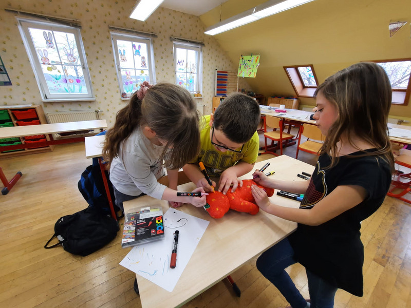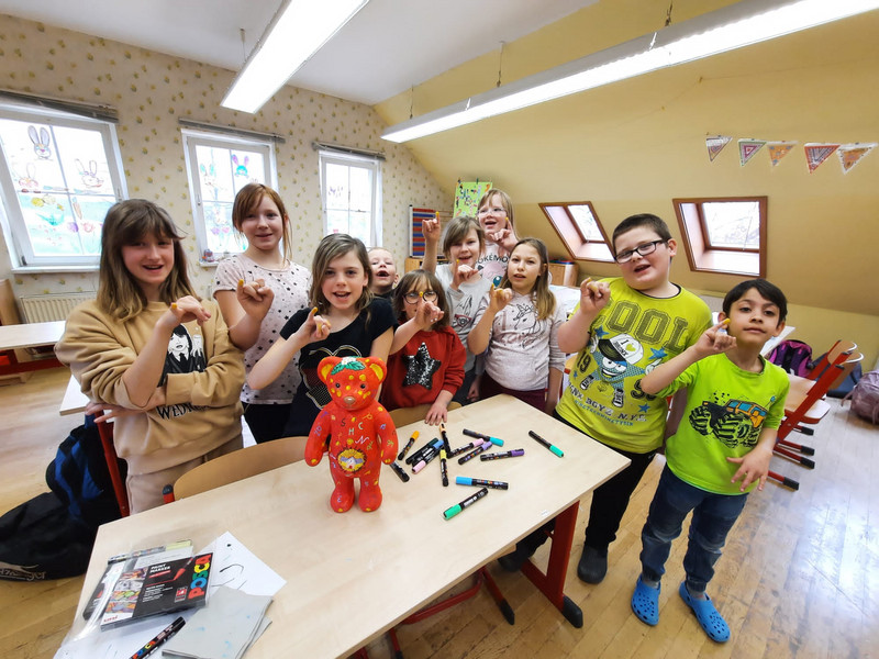 Da nun bald "Karls Erlebnis-Dorf" in Döbeln eröffnet, wurden wir und andere Kindereinrichtungen der Umgebung gebeten, einen Bären/Beeren :) zu gestalten. Und so sieht nun das Ergebnis aus. Farbenfroh und einfach toll! Alle Kinder des GTA Basteln waren fleißig und emsig bei der Sache. Bald nun können alle Besucher des Erlebnisdorfes diesen wunderschönen Erdbär bewundern.