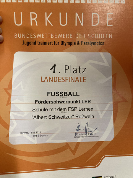 Sieger im Landesfinale Fußball in Grimma am 15.05. - diese Nachricht erreichte uns gegen 13:30 Uhr!