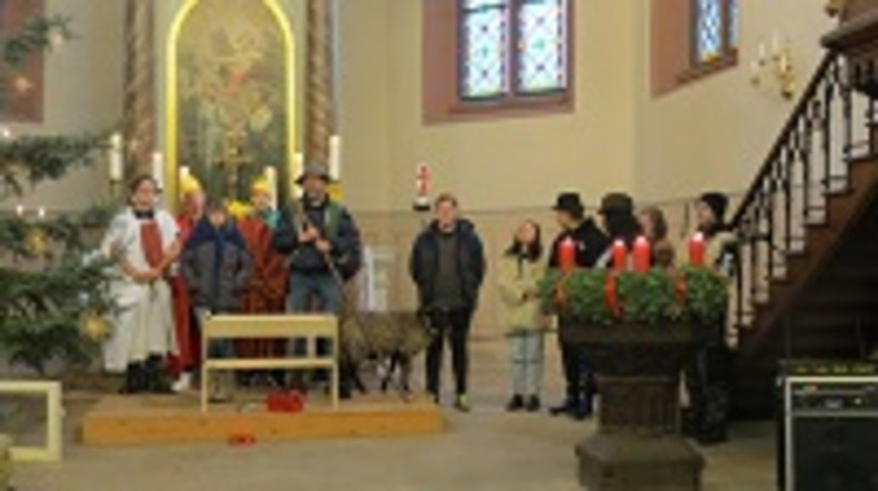 Danach liefen alle Schüler und Lehrer in die Roßweiner Kirche. Gespannt verfolgten wir mit weiteren Gästen die Aufführung des Krippenspiels durch die Schüler unserer Klasse 9 unter Leitung von Herrn Hartwig. Dabei konnten wir auch öfter mal schmunzeln. Die Hirten hatten diesmal sogar echte tierische Begleitung durch einen Hund und ein Schaf!