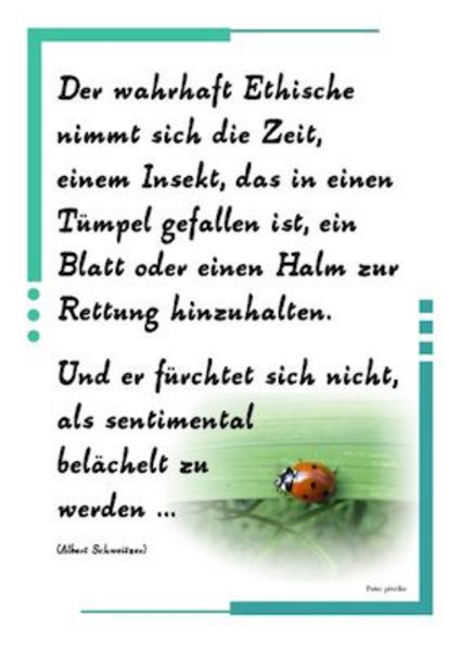 Unser Flyer wird hoffentlich, so bunt und informativ wie er ist, vielen die gleiche Freude bereiten wie der Marienkäfer auf dem "Albert Schweitzer"-Zitatflyer.