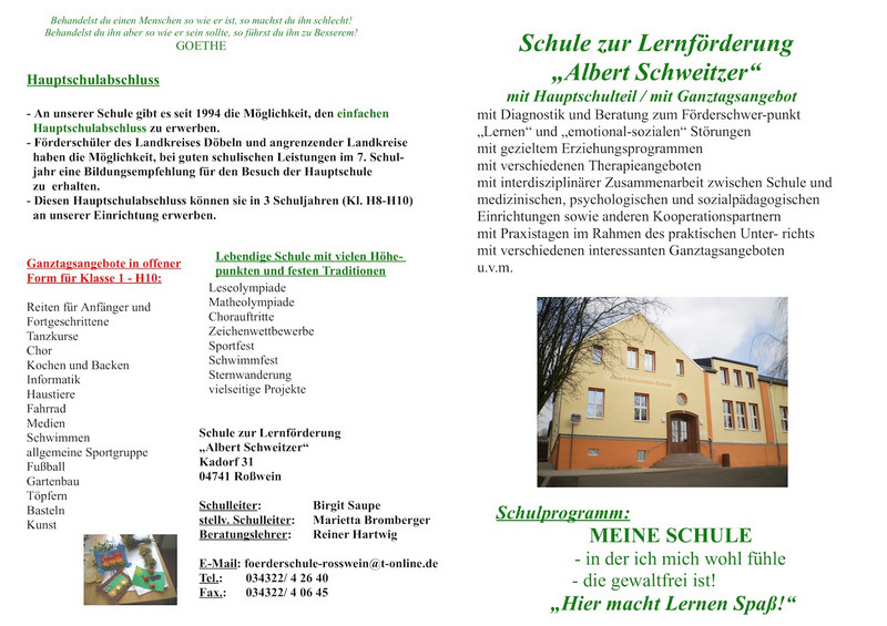 Auch wenn unser Flyer, im völligen Gegensatz zu unserer ständig aktualisierten Homepage, nur jedes Jahr einmal neu aufgelegt werden kann, könnt ihr den aktuellsten hier bewundern und euch, wenn ihr vielleicht darüber nachdenkt, eure Zukunft an unserer Schule verbringen zu wollen, auch ausdrucken.