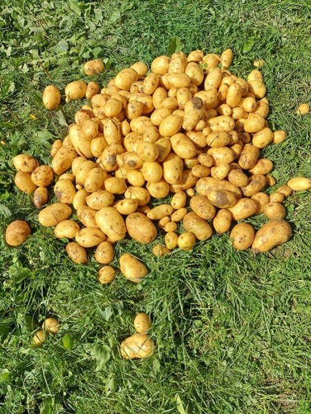 Aus den Kartoffeln wurden am Donnerstag, 10.09.2021 verschiedene Kartoffelgerichte für die Mittagsversorgung bzw. das Abendbrot/Grillen zubereitet (die beiden Klassen haben mit 4 Betreuern 2 Nächte in der Schule geschlafen und dazu zum Thema: "Kartoffel" ein kleines Projekt darausgemacht, aber sie haben noch viel interessantes erlebt. Aber dies ist ein anderes Thema.):