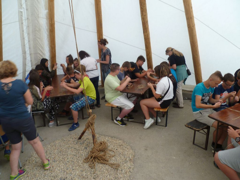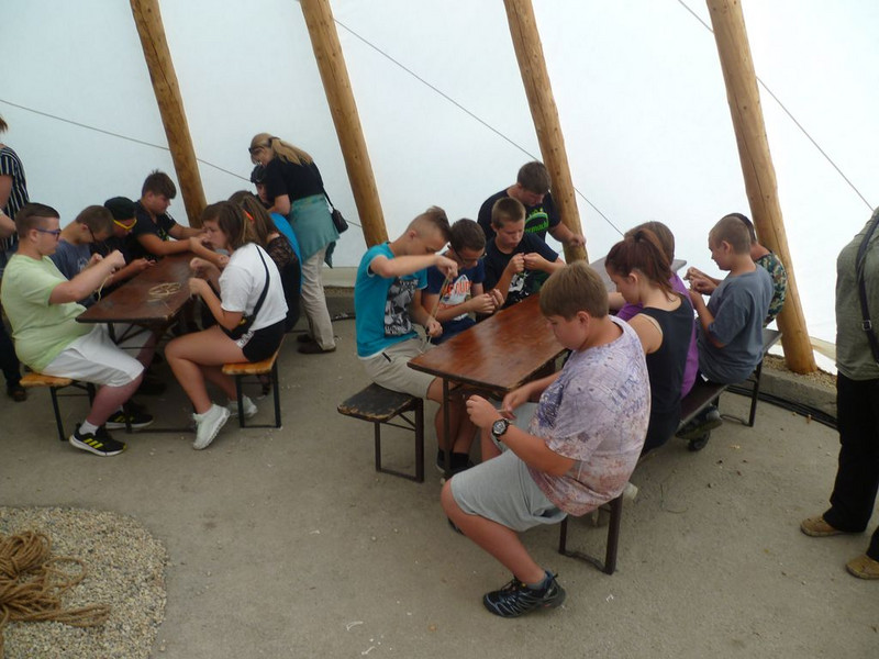 In einem großen Tipi stellten die älteren Schüler einen Traumfänger her. Da brauchte man Geschick und Geduld. Es hat aber auch gefallen. Danach besichtigten sie das Karl May Haus und das Indianermuseum.