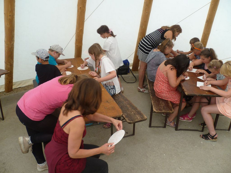Die Jüngeren Schüler besichtigten zuerst das Karl May Haus und das Indianermuseum. Danach gestalteten sie im großen Tipi bunte Sandklebebilder. Sie hatten sehr viel Spaß und alle gaben sich große Mühe.