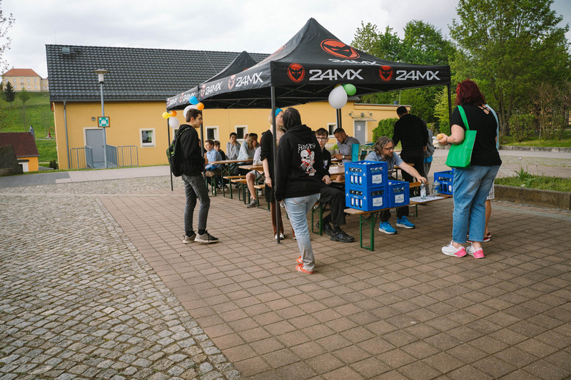 Am Freitag, 03.05.2024 fand an unserer Schule der "Tag der offenen Tür" statt. Zu diesem Event waren alle Schüler und Schülerinnen, die Eltern, Interessierte, die Kooperationspartner, Personen aus dem öffentlichen und politsichen Leben, ... eingeladen. Jeder, der kam, konnte sich im Schulhaus, im Schulgelände umsehen, um zu sehen, was alles bei passiert. Ausstellungen zum Fächerverbindenden Unterricht konnten sich angesehen, exotische Tiere waren zu sehen, die Fachkabinette konnten besucht werden, wo es auch teilweise aktiv zu ging. Kleine Künstler zeigten, was sie können. Für das leibliche Wohl wurde auch gesorgt mit Kuchen, Kaffe, Bratwurst, Steaks. Unser Paterbetrieb sponsorte die alkoholfreien Getränke. Bei der Organisation und Durchführung waren ganz viele Personen - das Kollegium, der Elternrat, ... - beschäftigt. Bei ihnen möchte ich mich ganz herzlich bedanken. Es wurde auch der neue Eingangsbereich unserer Schule offiziell eingeweiht (siehe Schülerrat).
