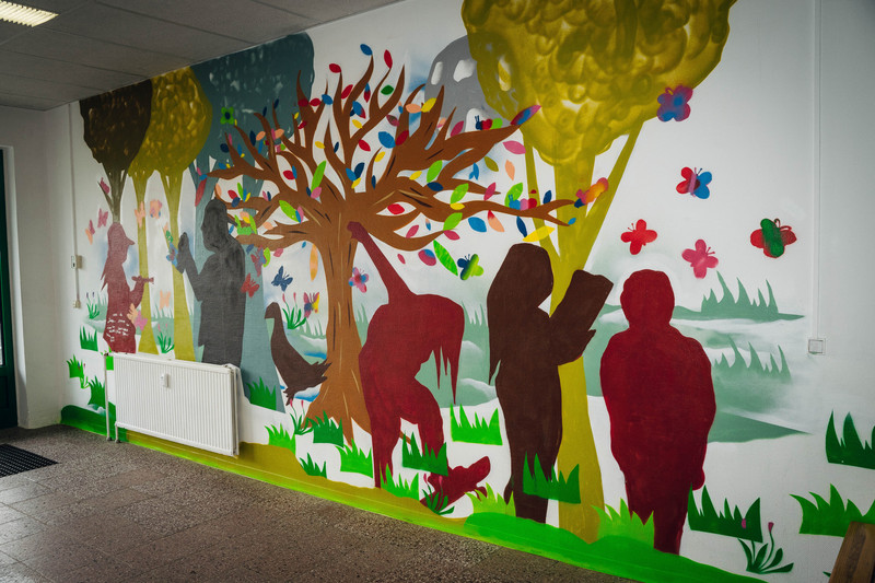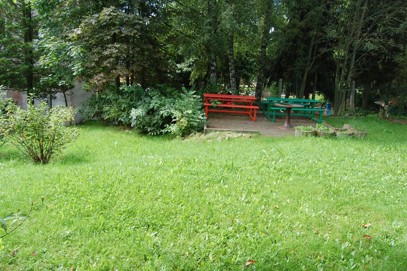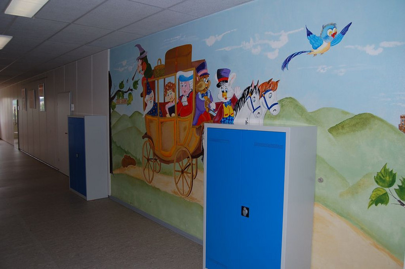 Turnhalle und Schulvorplatz/Pausenhof, Spielplatz und Sportplatz, Chillecke