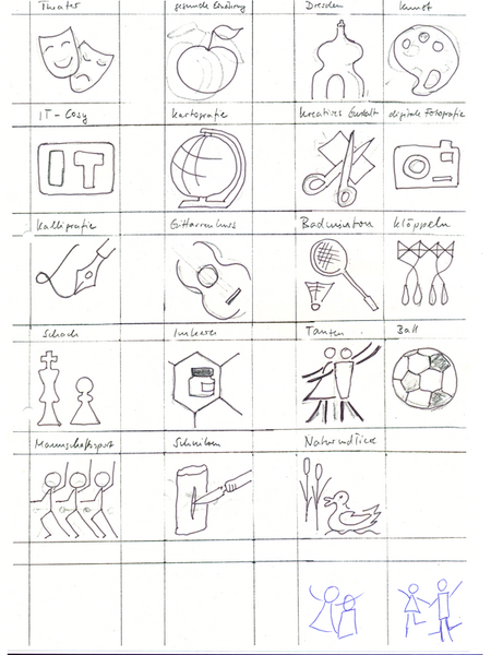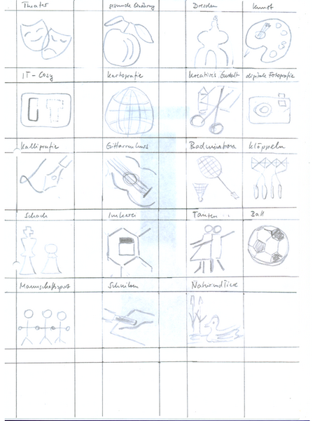 Am Anfang stehen ein paar hin gekritzelte Skizzen. Für einen Symbolfont werden diese ersten Ideenskizzen immer wieder verfeinert. Dabei gilt als wichtiger Hinweis: „Reduktion, Reduktion, Reduktion ... auf das Wesentliche“.