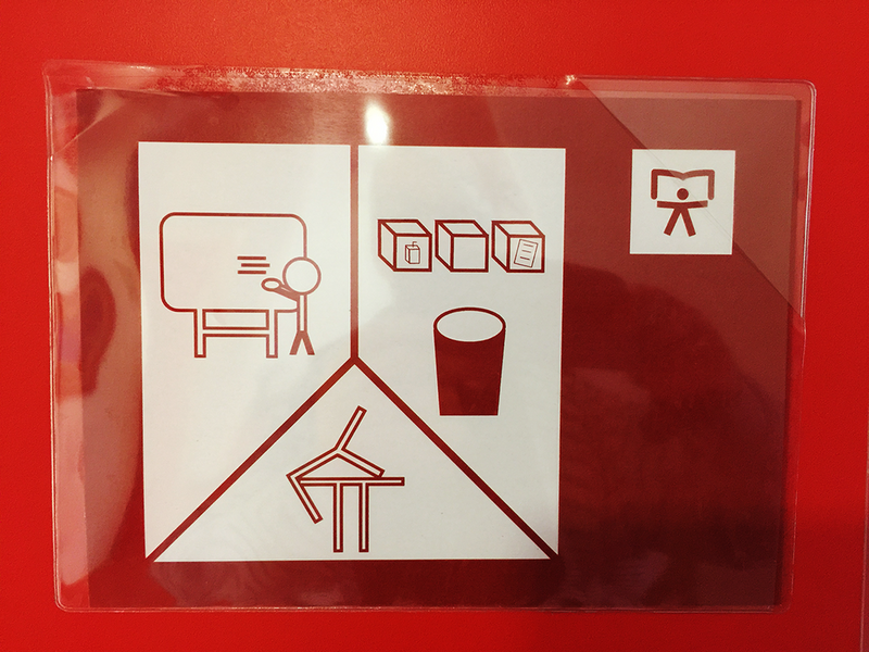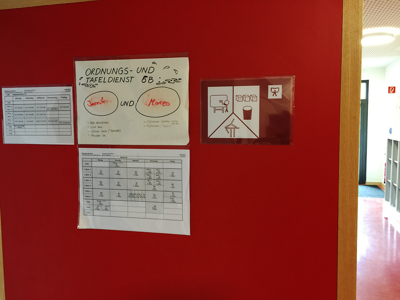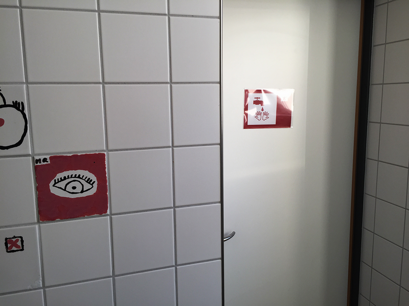 Es war sozusagen ein Auftragsprojekt der Schulleitung. Diese wünsche sich für den öffentlichen Raum der Schule einige leicht verständliche Hinweise für den Schulalltag in Zeichenform.