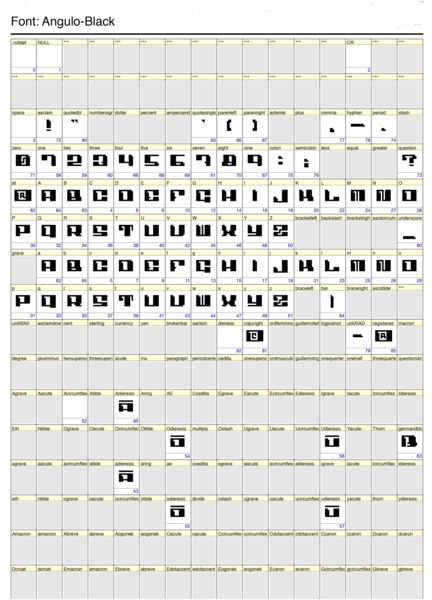 Und hier das fertige Ergebnis – der Font Angulo-Black (Die Schrift Angulo-Black kann für nichtkommerzielle Zwecke frei verwendet werden.):