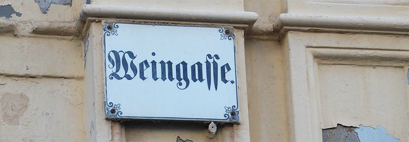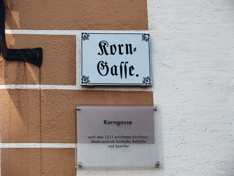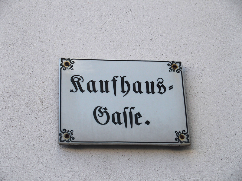 Beide Städte haben ihre Straßen und Gassen im Zentrum mit Schildern in Frakturschrift ausgestattet. Die Ansätze dabei sind jedoch unterschiedlich.