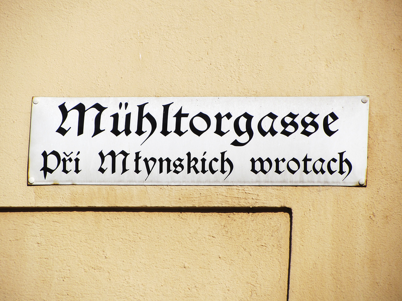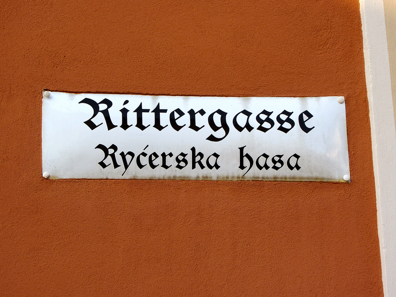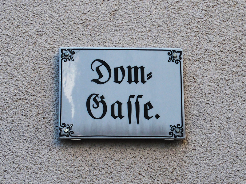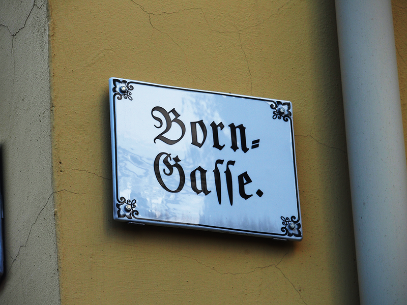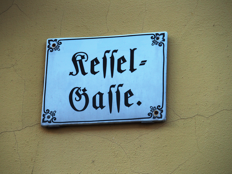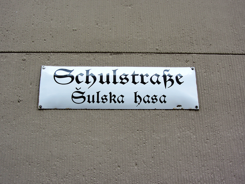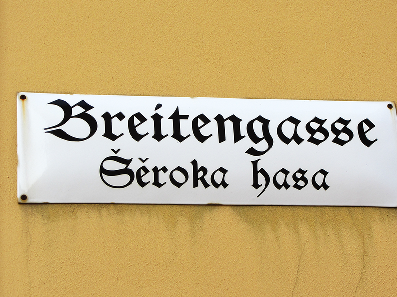 In Bautzen sind die Schilder in einer relativ fetten Fraktur gesetzt, die leider ohne die Verwendung des in der Fraktur typischen langen s-Lautes daher kommt. Viele Straßenschilder sind als Besonderheit zweisprachig – in deutsch und sorbisch.