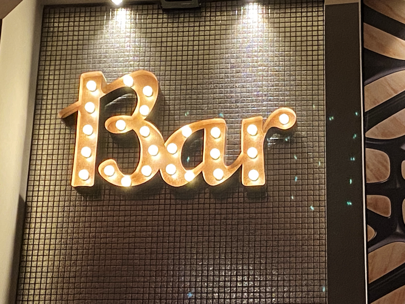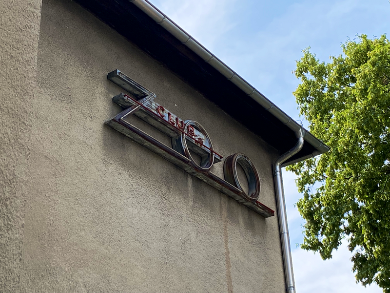 Leuchtreklame ging natürlich auch ohne Neoröhren, z.B. mit Glühlampen, hier zu sehen als Beispiel das Schild aus der Bar in den OSTRA-STUDIOS in Dresden - herrlich altmodisch und wunderschön.