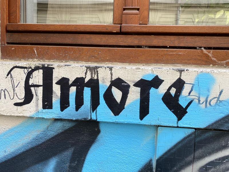 Typografisch gesehen sind die Botschaften meist mit der Farbdose gesprüht oder auch mit einem Pinsel gemalt mit der Handschrift des Verursachers. Es gibt aber auch Beispiele, wo eine besondere Schrift zum Einsatz kam, wie bei der gebrochenen Schrift und der Liebesbotschaft „Amore”.