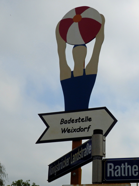 Doch, oh Schreck - letzte Woche ist mir aufgefallen, dass das Schild gegen ein neues, „modernes” Hinweisschild ausgetauscht wurde. Das Motiv der Badefrau mit dem Standball ist zwar noch gleich, aber die Beschriftung ist modernisiert. Schade und autsch …