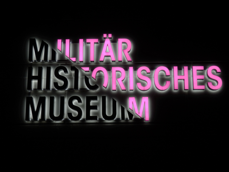 Beim Schild für des Militärmuseum hat sich ja ein Designer mal so richtig ausgetobt und den „Keil“ auch durch die Schrift gejagt. Ob die pinke Farbe allerdings sehr militärisch ist, bleibt für mich so die Frage.