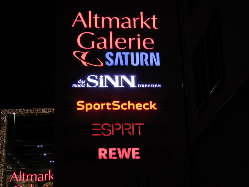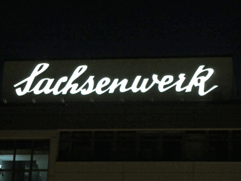 Die ersten Beispiele sind Leuchtreklamen oder Leuchtschriften in Metallkästen mit Plexiglasabdeckung. Als Beispiele ganz klassische Werbung, Informationstafel für die Anlieferung, das neue Schild für das „MILITÄR HISTORISCHE MUSEUM“ und die historische Leuchtschrift vom Sachsenwerk.