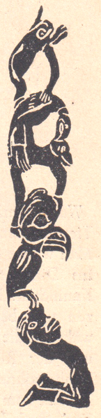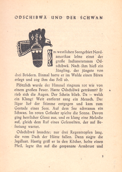 In diesem Büchlein begeistern einen, wie gesagt, nicht nur die handgezeichneten Initiale sondern auch die indigenen Zeichen. Im Buch kann man sogar den Urheber noch nachlesen. Die Zeichnungen stammen von dem Hallenser Friedrich Stein. Leider steht in dem Heft keinerlei Jahresangabe der Erscheinung. Hier die Initiale und indigenen Zeichnungen aus „ORENDAS BOTEN” - Märchen aus aller Welt - Heft 9 - Indianische Legenden: