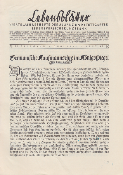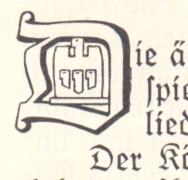 Teil 4 der Initiale stammt wieder aus einem Heft der Reihe „Lebensblätter” der Allianz und Stuttgarter Lebensversicherungsbank. Das Thema dieses Hefts ist sozusagen in ganz eigener Sache. Es geht um die Kaufmannslehre und im weitesten Sinne spricht man ja auch von einem Versicherungskaufmann. Deshalb haben die Initiale sicherlich auch das Zeichen der Allianz und Stuttgarter Lebensversicherungsbank - den Greif oder Adler im jeweiligen Buchstaben.Auch in diesem Heft sind neben den Initialen wieder wunderschöne Zeichnungen z. B. Der wichtigen Hanse-Städte zu sehen. Echt toll!!!
