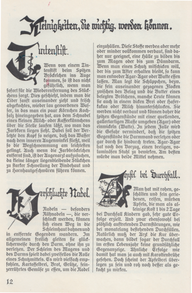 Es gibt aber in diesem Heften neben den „normalen” Initialen auch in einigen Texten oder Überschriften eigene Initiale, die sich dann auf den jeweiligen Text beziehen. Auch dieses solle hier gezeigt werden.