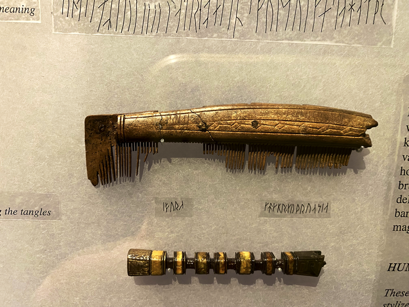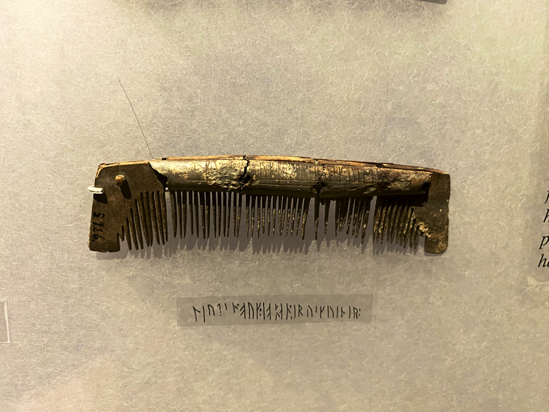 Leider, aber verständlicher Weise, waren diese in Glasvitrinen untergebracht. So sind auf den Fotos immer mal Spiegelungen zu sehen. Hier eine Auswahl dieser Runeninschriften: