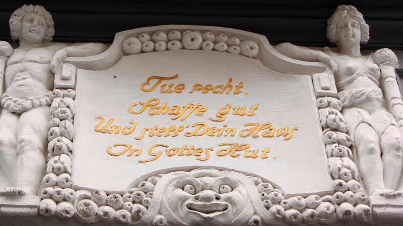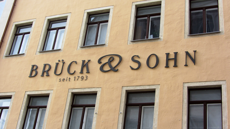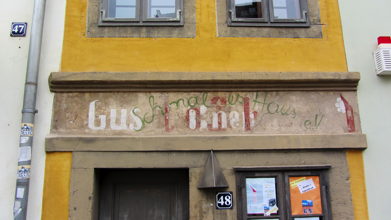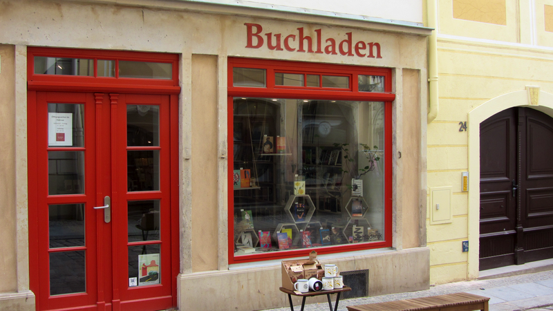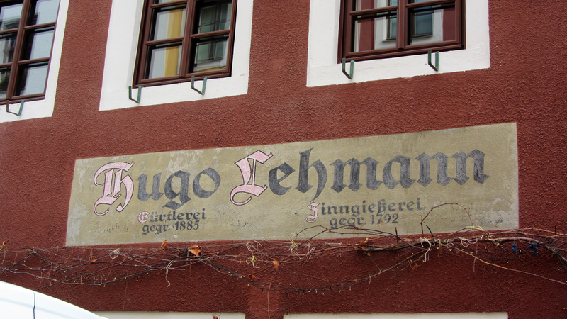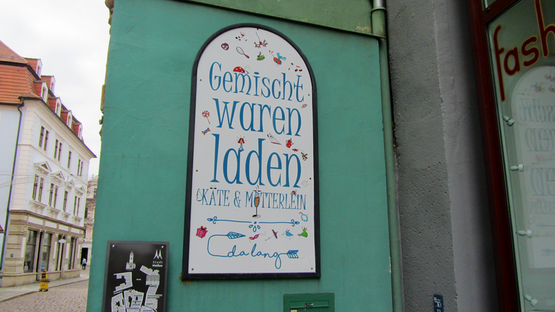 Auf der Burgstraße prangt des wunderbare Schild von „Brück & Sohn”. Leider gibt es das schöne Ladengeschäft nicht mehr. In diesem Papier- und Schreibwarenladen über zwei Etagen konnte man sich als Liebhaber von diesen Dingen wirklich verlieren. Die Spezialität von „Brück & Sohn” waren ihre Gruß- und Geschenkkarten für die verschiedensten Anlässe und natürlich die Adventskalender. Schade, dass diese schöne Tradition verloren geht. Doch das Markenschild ist geblieben. Auf der Burgstraße gab es noch eine Reihe von anderen Schildern. Neu ist das sehr schön restaurierte Schild des ebenfalls neuen Buchladens. Gleich daneben ist noch das Fragment einer alten Geschäftsbeschriftung zu sehen, die wohl aber nicht mehr zu retten ist. So eine Beschriftung habe ich auch noch auf der Neugasse gefunden.